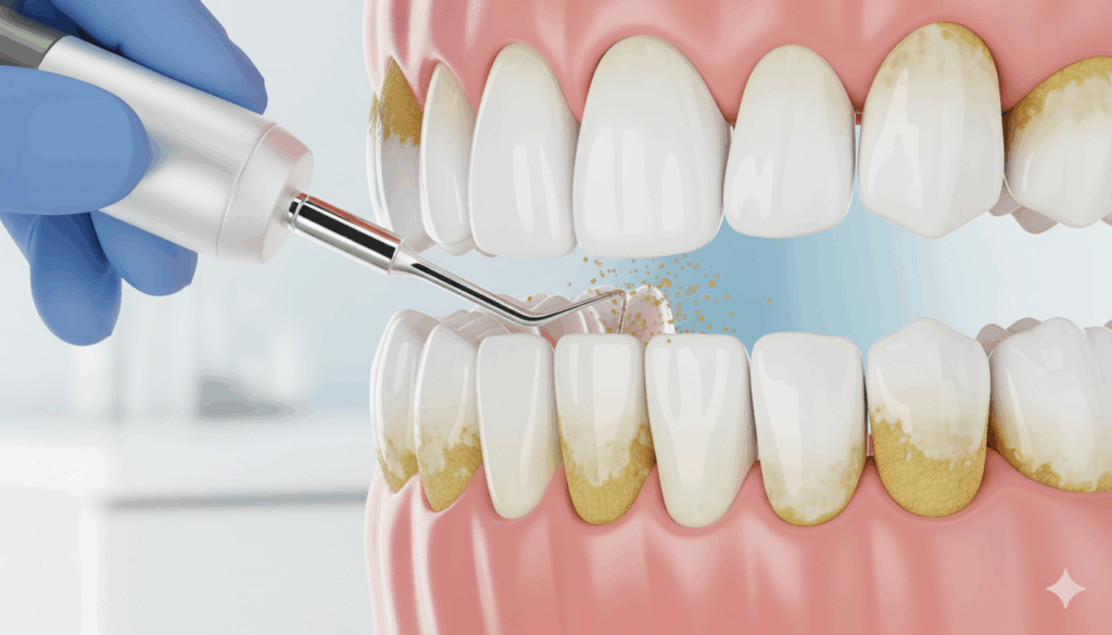 keeps your teeth clean and healthy by removing plaque, tartar, and stains. It helps prevent gum problems, freshens your breath, and gives you a brighter smile. Regular cleaning every six months keeps your mouth fresh and healthy.